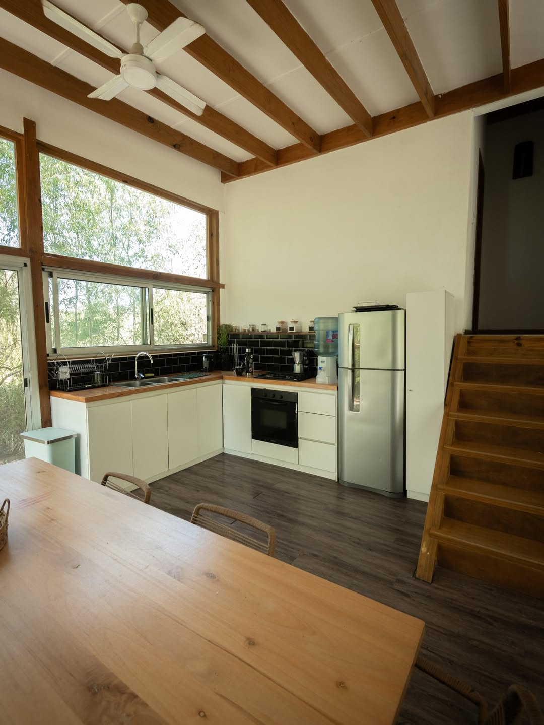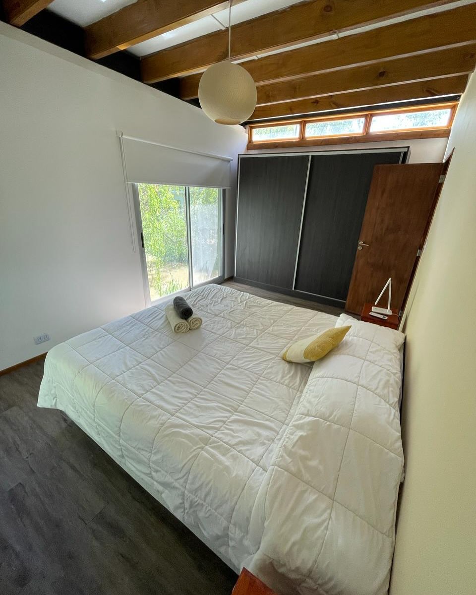 La casa cuenta con capacidad para hasta 4 personas, con cama matrimonial en cada habitación. Además, ofrece comodidades como wifi, smart TV y espacios diseñados para disfrutar tanto adentro como afuera.